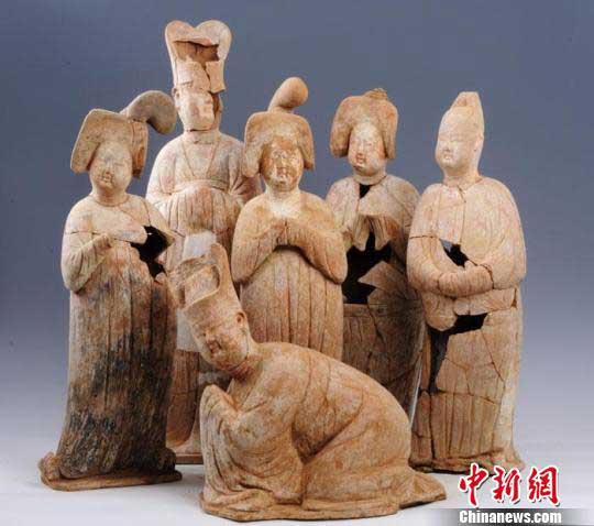 X’ian - Recently the Xi'an Cultural Relics Protection Institute excavated a tomb complex in a western suburb of Xi'an, capital of Shaanxi Province, and ancient capital of China. The 18 tombs date back to the Tang Dynasty, some 1200 years ago. According to researchers, the tombs belong to a prince from a Turkic clan, which was a minority group located in the area during the Western Tang Dynasty. Archaeologists have unearthed many funerary objects such as figurines, including a rare kneeling eunuch figurine. The reason this Turkic prince was buried in Xi'an is because during that period the prince was held hostage in the central Tang territory in order to keep the peace.