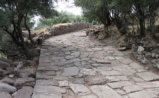 Aigai - 55-kilometer section of a road that was built 2,000 years ago has been discovered in ongoing excavations of the ancient city of Aigai located in Turkey's Manisa province. Sezgin said that excavation work, which began in 2004, has pointed to evidence that the city became a regional point of economic and cultural attraction during the Hellenistic period in the 3rd century B.C. with the support of the Kingdom of Pergamon.The ancient city of Pergamon, now the town of Bergama, is located some 30 kilometers north of Aigai, nestled in the Yunt Mountains of the Aegean region. Sezgin said that the team had come across a road dating back to Roman era in 1st century A.D., which started from the Aegean Sea shore and was once used to facilitate transport between Izmir and Manisa."It is noteworthy that the road is as solid as the first day that is was built. Our examination showed that large water discharge channels were constructed under the road to prevent possible flash floods. In addition, we noticed that engravings were carved upon the stone plating to prevent horses from slipping during winter," Sezgin said. The road was first used as a route for war campaigns, and later for trade caravans, Sezgin explained, noting that it was part of a larger system of paths operated by the Roman Empire, which was famous for building vast networks of roads.