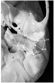 Figure 1. Fifteen temporal bone landmarks digitized in the present study, following Lockwood et al. (2004). Please see Table 2 for landmark definitions. The open circle for landmark #14 indicates its approximate position, as it is not directly visible from this perspective.