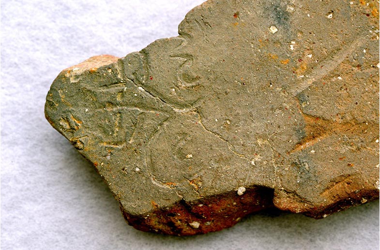 A clay tile bearing a character meaning "flight"in Kashihara, Nara Prefecture (Yoshinori Toyomane)