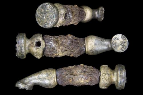 "The function of the iron tools is a bit of a mystery, but given the equestrian nature of the hoard, it is possible that they were associated with horse grooming. One piece in particular has characteristics of a modern curry comb, while two curved blades may have been used to maintain horses hooves or manufacture harness parts."