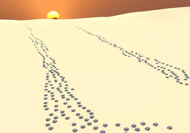 This computer model shows the positions of the rocks, the pyramid and the winter solstice sunset