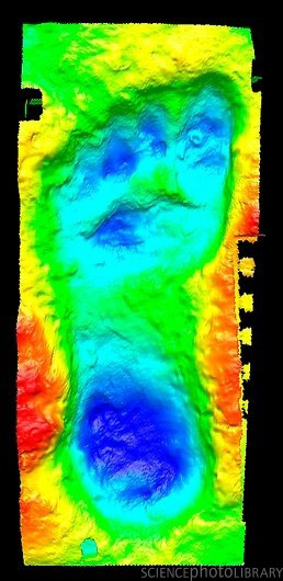 Matthew Bennett, Université de Bournemouth. L'une des empreintes de pied prélevées numériquement. Elle date d'environ 5 000 ans.