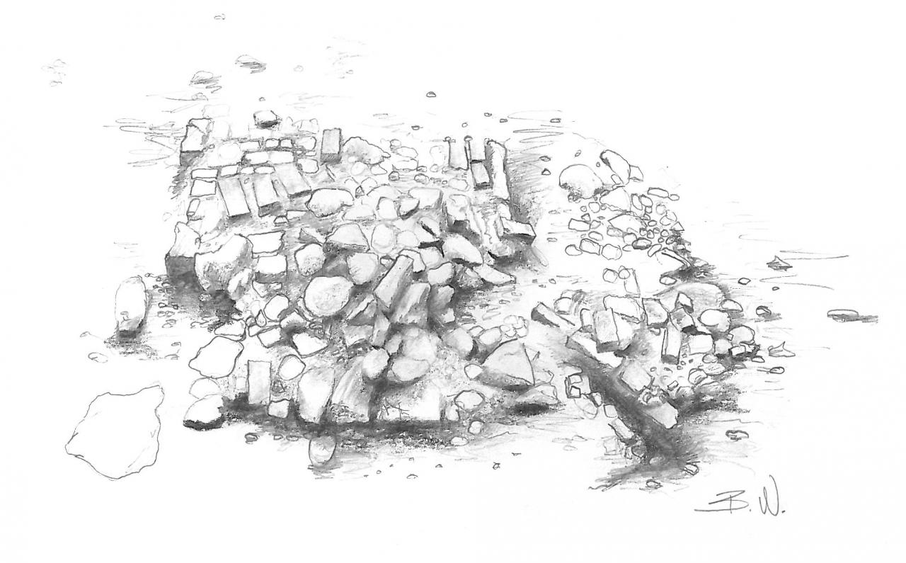 Drawing of the foundation with the stove clearly visible. Drawing by maritime archaeologist Wallbom, Björn, Sweden
