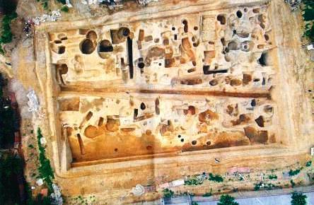 The massive cultural deposits in the site are divided into six layers, mainly assigned to Tang Dynasty and the Western Zhou period. The Western Zhou ruins include 90 pits, 1 ditch and 20 tombs. Among them the 37 ritual pits and the ditch are of great significance.