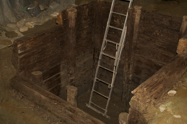 The wooden latrine from the 13th century, where the 11th-century ceramic shard was found - Photo: Christine Madden