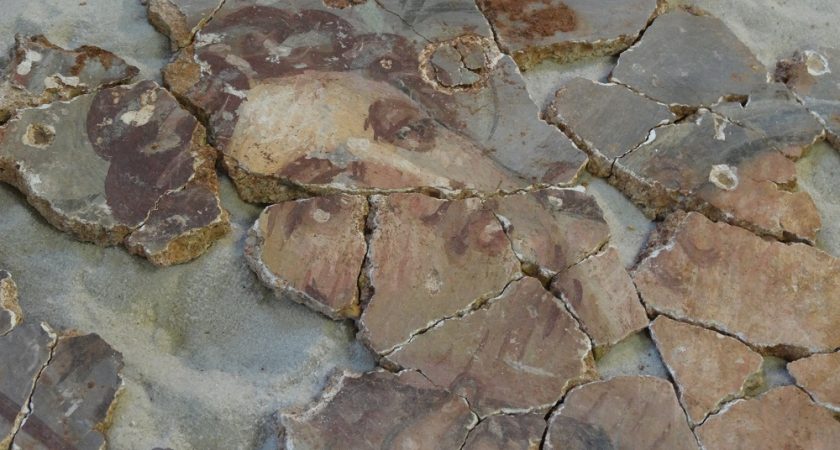 Grâce à un travail précis tant lors du prélèvement des fragments sur le site (récolte par mètre carré) que lors de l’analyse qui réclame d’incroyables trésors de minutie et de patience, c’est toute l’élévation de la pièce (sur cinq mètres de haut!) qui est désormais restituée. Chaque fragment a été nettoyé puis numéroté avant que les archéologues du CEPMR ne reconstituent le puzzle.