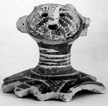 Fig.1 A painted ceramic lid in the shape of a shaman's head, one of the missing Yangshao artfacts. From Magnus Fiskesjö and Chen, Xingcan. China Before China: Johan Gunnar Andersson, Ding Wenjiang, and the Discovery of China's Prehistory (Bilingual, English and Chinese), Stockholm: Museum of Far Eastern Antiquities, 2004.