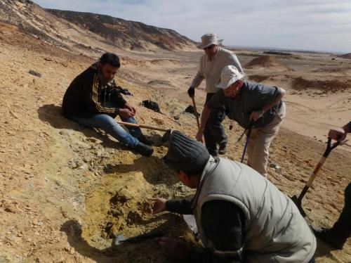This is the team from the University of Kansas unearthing fossils in Libya, despite dangers. Credit: Yaowalak Chaimanee, University of Poitiers, France